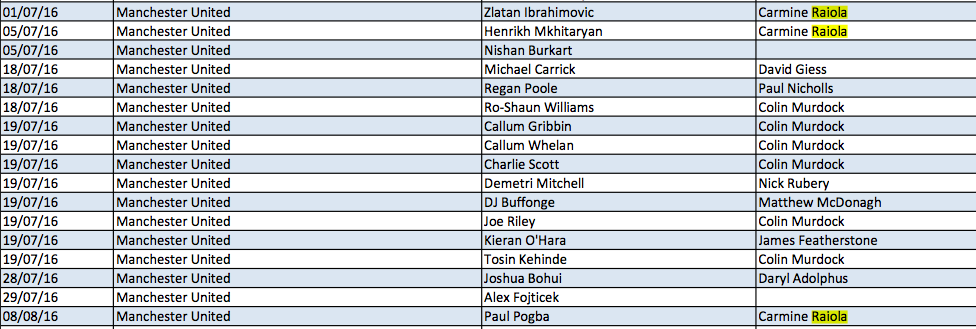 Il Manchester United, tra l’altro, ha nell’ultimo anno ha fatto ben 3 affari con Mino Raiola: il noto procuratore ha infatti portato ai Red Devils Ibrahimovic, Mkhitarian e Paul Pogba, agendo come intermediatore nell’affare come si evince dai documenti pubblicati dalla FA.