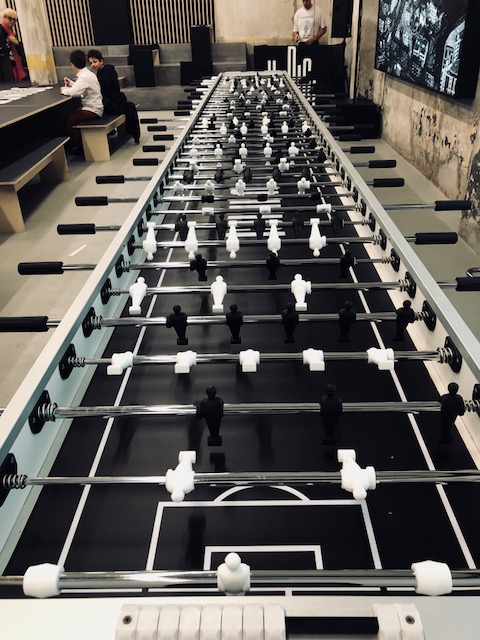 SHARE: Una forma iconica, rettangolare come il campo da gioco. Un grande tavolo dove ci si possa sedere, leggere libri e riviste messi a disposizione del pubblico, lavorare, socializzare. Condividere.