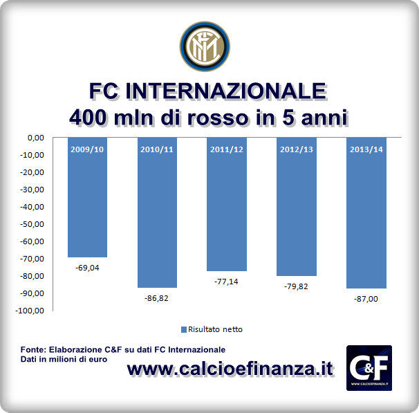 Se a questo si aggiunge il fatto che le plusvalenze derivanti dalla cessione di calciatori (player trading) sono state solo di 7 milioni (33,89 milioni nel 2012/13 e 72,90 nel 2009/10, anche in virtù della cessione di Zlatan Ibrahimovic al Barcellona) e che gli ammortamenti sono rimasti pressoché in linea con gli ultimi esercizi (i 73 milioni riportati dalle agenzie di stampa dovrebbero comprendere anche alcune svalutazioni di asset), si comprende perché del peggioramento del risultato operativo (Ebit), negativo per oltre 100 milioni, rispetto agli ultimi esercizi (-74 milioni nel 2012/13).