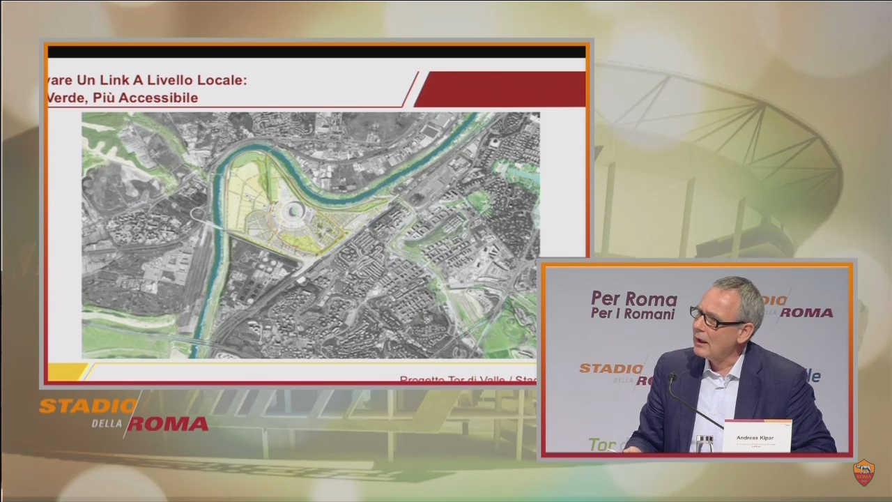 “Se vogliamo competere come un top club nel mondo, dobbiamo avere un nuovo stadio: al progetto ci stiamo lavorando da tre anni. Voglio congratularmi con tutto lo staff e i giocatori perché abbiamo fatto della Champions League un obiettivo. Vogliamo dare a Roma e ai romani delle strutture adeguate”, spiega James Pallotta. Un progetto che prevede nelle intenzioni della società un processo di riqualificazione della zona di Tor di Valle. Non è un caso che tutti i soggetti coinvolti parlino di sport e divertimento. Italo Zanzi, ad del club, parla di 60 ettari dedicati all’intrattenimento. “Ci sarà un parco attrezzato, questo progetto bloccatosi nel 1987 riprende oggi”, ricorda Riccardo Viola, oggi membro del Coni e già appartenente alla società giallorossa, nonché figlio di Dino, ex presidente dello scudetto del 1983.