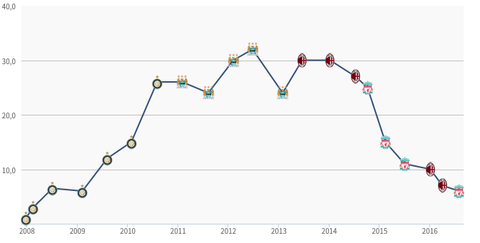 Di fatto, immaginando oggi un valore di 5 milioni di euro, il valore di Balotelli in questi quattro anni si è svalutato di un 85% potenziale (dando per buoni i 32 milioni di valutazione transfermarkt nell’estate 2012) che corrispondono comunque ad un 75% reale dal momento del suo ultimo passaggio di maglia. Ma il credito di cui l’ex attaccante dell’Inter gode oggi è – probabilmente – molto minore.