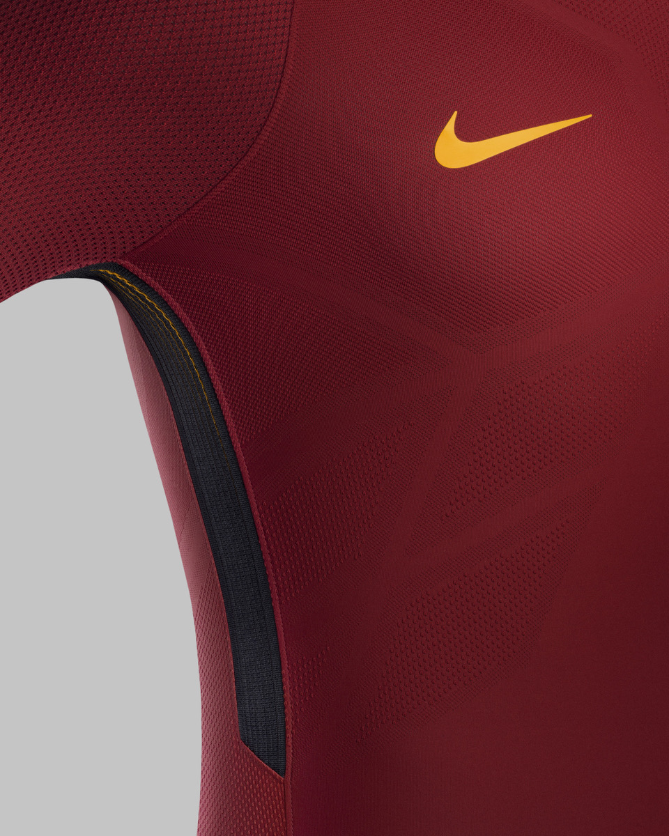 La nuova divisa home della AS ROMA coniuga lo stile classico e l’ultima e più avanzata tecnologia Aeroswift utilizzando i colori iconici giallo e rosso arricchiti da dettagli in nero. I colori giallo e rosso sono tornati nella loro tonalità tradizionale, per richiamare la missione originaria del Club – fondato nel 1927 per difendere il nome, i colori e il simbolo della Capitale.