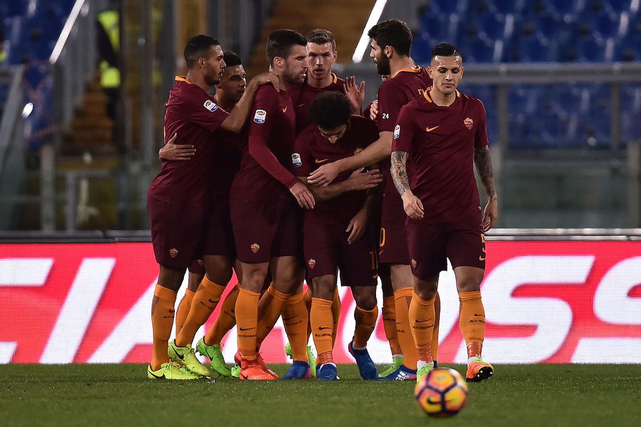 Esultanza dei giocatori della Roma (Foto: Insidefoto)