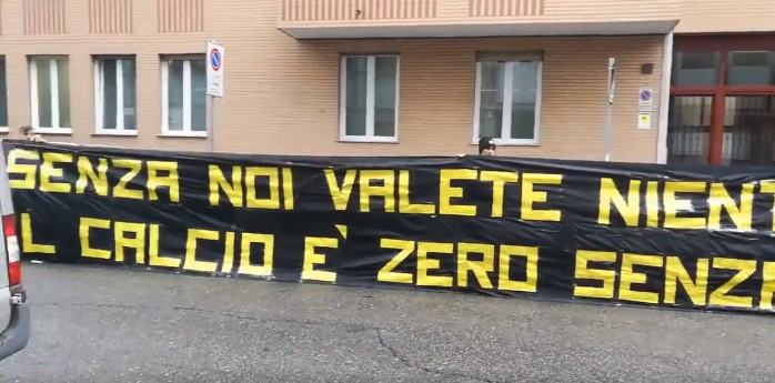 In occasione dell’assemblea della Lega di Serie A, che oggi a Milano esaminerà l’offerta di Mediapro sui diritti tv del triennio 2018-2021, una decina di tifosi del gruppo ultras della Sampdoria ‘Tito Cucchiaroni’ hanno esposto uno striscione che recita “senza noi valete niente, il calcio è zero senza la sua gente”.