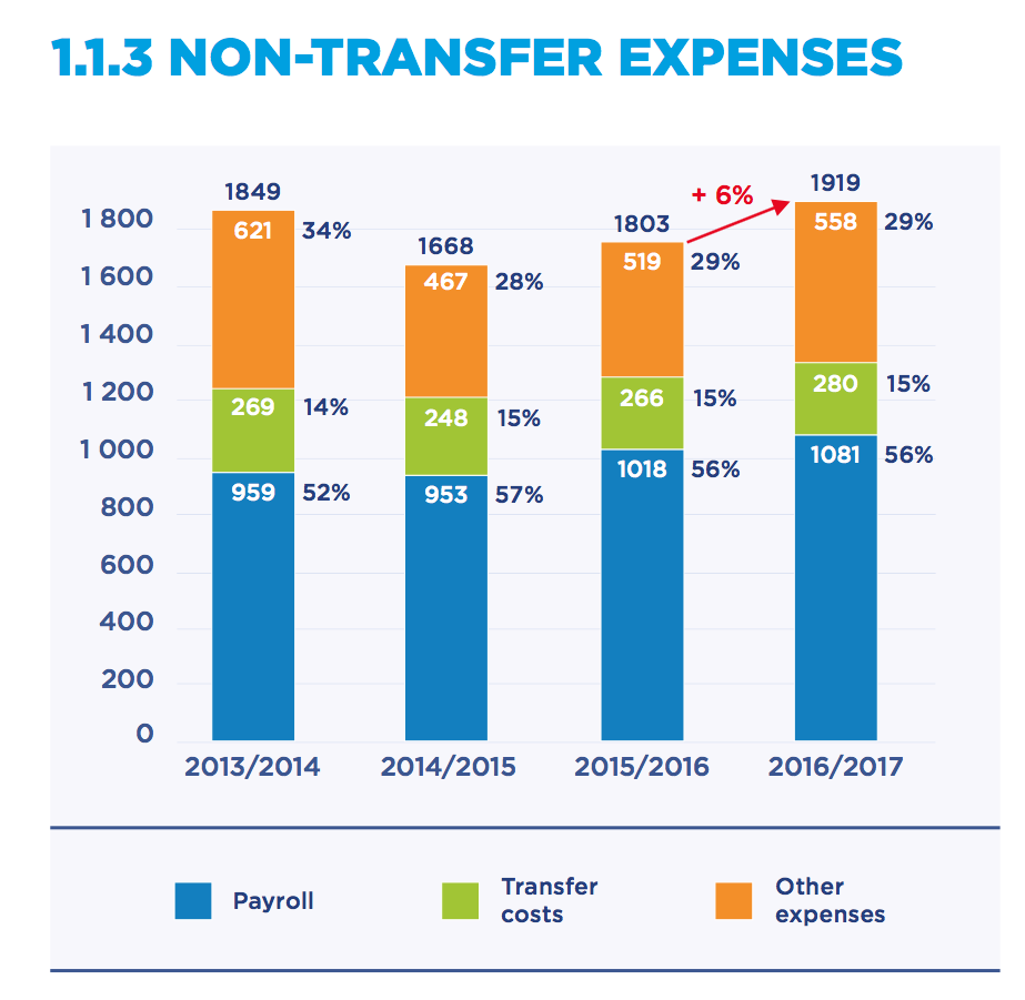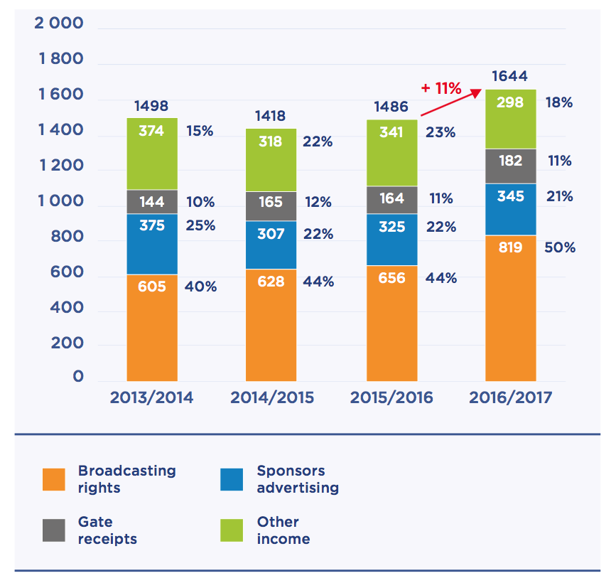 A livello di costi, la Ligue 1 ha visto le spese crescere a 1,919 miliardi di euro nella stagione 2016/17, in crescita del 6% rispetto al 2015/16.