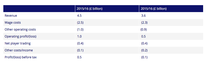 I ricavi complessivi delle società della Premier League sono aumentati di quasi 1 miliardo di sterline (circa 1,1 miliardi di euro) fino a raggiungere i 4,5 miliardi di sterline (5,1 miliardi di euro) nella stagione 2016/17. Numeri che hanno fatto quasi triplicare l’utile ante imposte, passato da 0,2 miliardi di sterline del 2013/14 (miglior risultato di sempre per la Premier League) ai 0,5 miliardi di sterline del 2016/17.