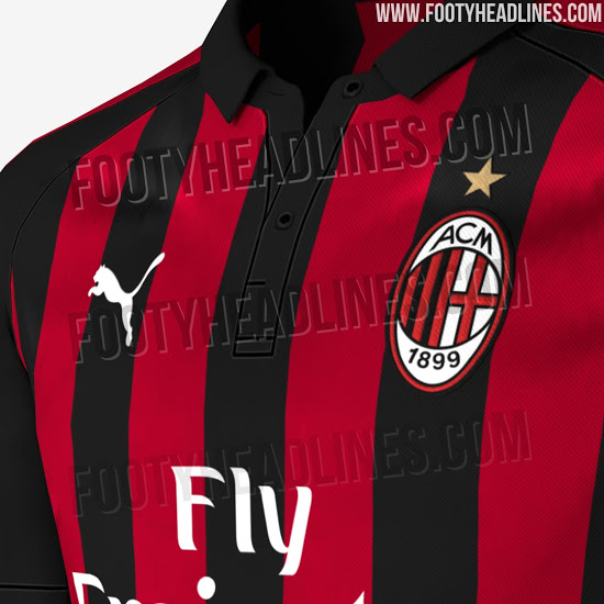 Ispirata alle classiche maglie del Milan degli anni ’90, la maglia home realizzata da Puma dovrebbe presentare cinque strisce nere e quattro rosse sul davanti della divisa, con una striscia centrale nera. Le maniche della maglia, secondo footyheadlines.com, dovrebbero essere nere, con una striscia rossa che caratterizza la parte superiore, su cui compare anche il logo Puma in bianco.