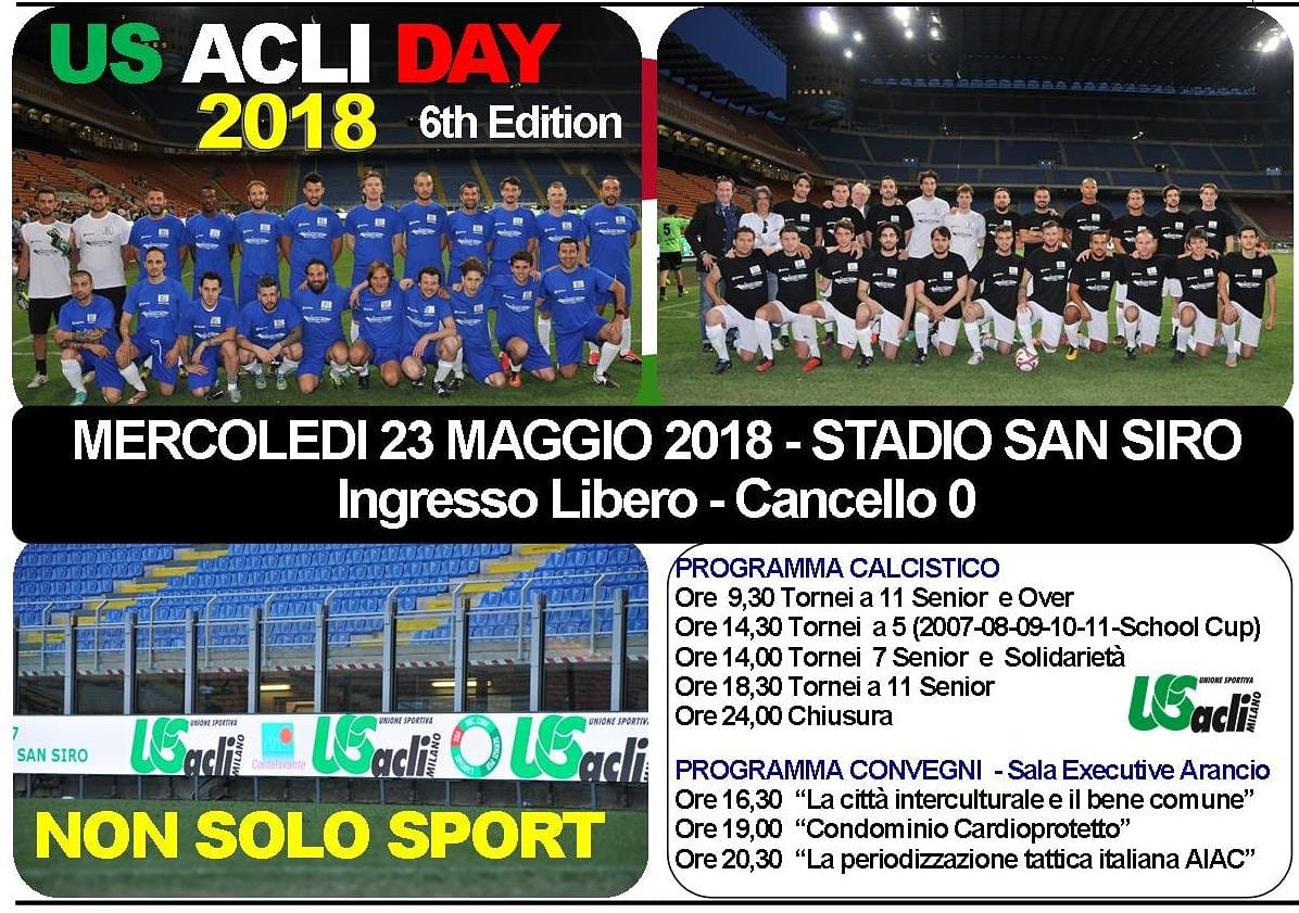 San Siro non ha ancora chiuso la stagione calcistica e, dopo il Galà dedicato ad Andrea Pirlo, ospiterà mercoledì un’altra iniziativa di beneficenza nell’ambito dell’UsAcli Day 2018 dedicata alla raccolta di fondi per Dynamo Camp (terapia ricreativa per ragazzi con patologie gravi) e per la costruzione alla Cittadella di Torino di un campo dedicato ai giovani disabili.