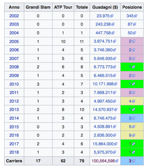 Per la precisione, dal 2002 ad oggi, Rafael Nadal ha incassato 100.564.598 dollari grazie ai suoi 90 titoli tra singolare (79, di cui 17 Slam) e doppio (11).