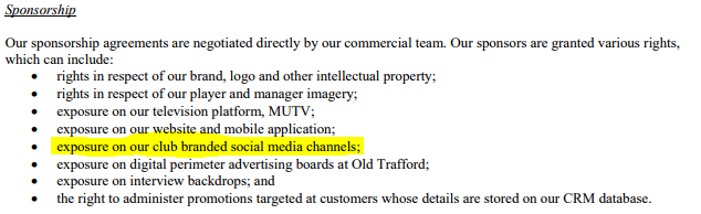 Essere uno dei club più seguiti sui canali social permette dunque di vendere la propria audience alle aziende partner. Sfruttare la fanbase per avere maggior potere contrattuale in sede di negoziazione con gli sponsor. Come dimostrano anche gli accordi chiusi con Chevrolet nel 2012 per 560 milioni di dollari in 9 anni e Adidas per 750 milioni di dollari di minimo garantito in 10 anni siglato nell’agosto 2015. Adidas che, in Premier League, ha investito tanto sul Manchester United. Unico top club di cui è sponsor tecnico.