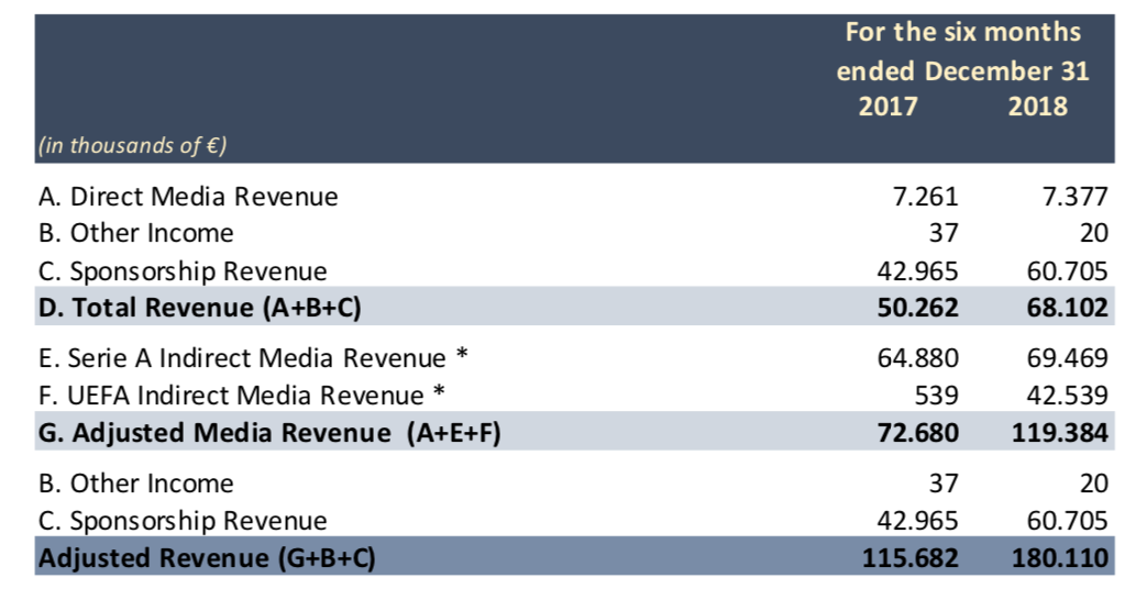 Una crescita dovuta principalmente alla partecipazione alla Champions League, all’aumento delle entrate di sponsorizzazione guidate dagli accordi di sponsorizzazione asiatici firmati nell’ultimo trimestre dell’anno fiscale precedente e la crescita delle entrate dai diritti tv della Serie A.