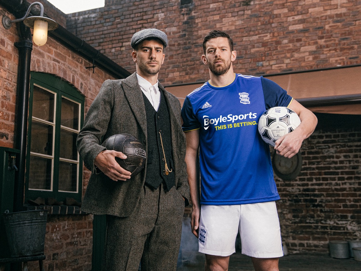 Nel video di presentazione non mancano il fumo e le coppole ma protagonisti non sono Tommy Shelby e la sua terribile banda bensì i giocatori del Birmingham che palleggiano vestiti proprio come i protagonisti della serie per poi fare un salto nel presente indossando la nuova divisa home del club. Quest’ultima, firmata Adidas, presenta maglia e calzettoni di colore blu e pantaloncini bianchi. Sulle spalle e sui lati dei pantaloncini sono presenti le classiche tre strisce che caratterizzano il marchio fondato da Adolf Dassler.