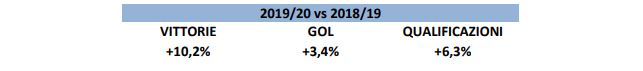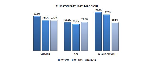 Rispetto ai dati della fase a gironi della scorsa edizione, complessivamente i club con i fatturati più alti per ciascun girone hanno migliorato tutte le performance: più vittorie (+10,2%) più reti (+3,4%) e più qualificazioni (+6,3%).