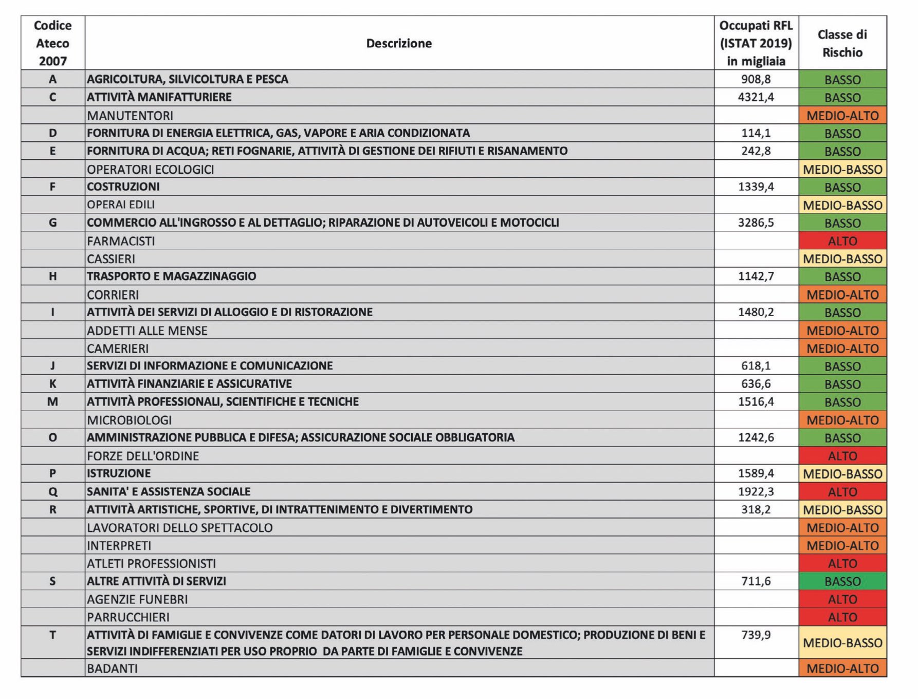 Esposizione, prossimità, aggregazione: sono queste le variabili per classificare il rischio. Tre variabili che, come si vede nella tabella pubblicata dall’Inail nel documento, portano a classificare il rischio relativo agli atleti professionisti come “alto”.