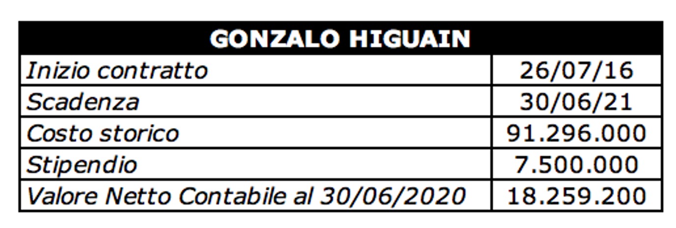 Al 30 giugno 2020 Higuain entrerà nell’ultimo anno di contratto e il suo valore netto contabile sarà pari a € 18.259.200. Per evitare una minusvalenza la Juventus potrebbe trovare un accordo che, magari, preveda l’inserimento di qualche giovane millionarios nella trattativa, così come fu per il passaggio di Tevez al Boca Juniors qualche anno fa. Questo perché sembra difficile ipotizzare che i biancorossi di Buenos Aires sia in grado di garantire la cifra necessaria ai bianconeri, che però potrebbero valutare anche la possibilità di incassare meno garantendosi comunque un risparmio sull’ingaggio per l’ultimo anno di contratto.