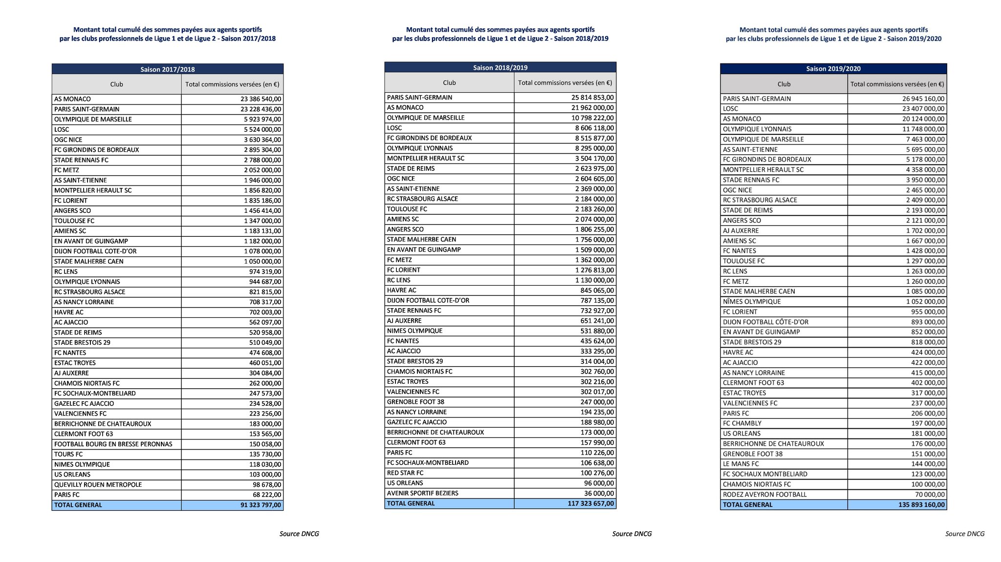 Il Psg si conferma la società che ha speso di più per l’operato degli agenti sportivi: 26,9 milioni di euro. Al secondo posto il Lille, che dopo gli 8,6 milioni spesi nel 2018/19, arriva a quota 23,4 milioni di euro. Chiude il podio il Monaco, con poco più di 20 milioni.