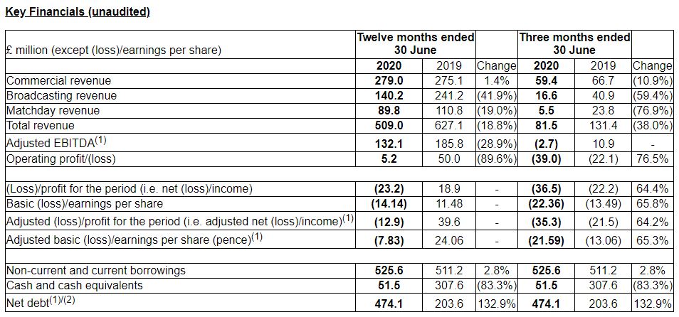 Per quanto riguarda i ricavi da diritti Tv, il club spiega che il calo è da attribuirsi in parte alla mancata partecipazione alla scorsa edizione della UEFA Champions League e in parte allo slittamento di 10 partite (tra Premier League, Europa League ed FA Cup) all’anno fiscale 2021.