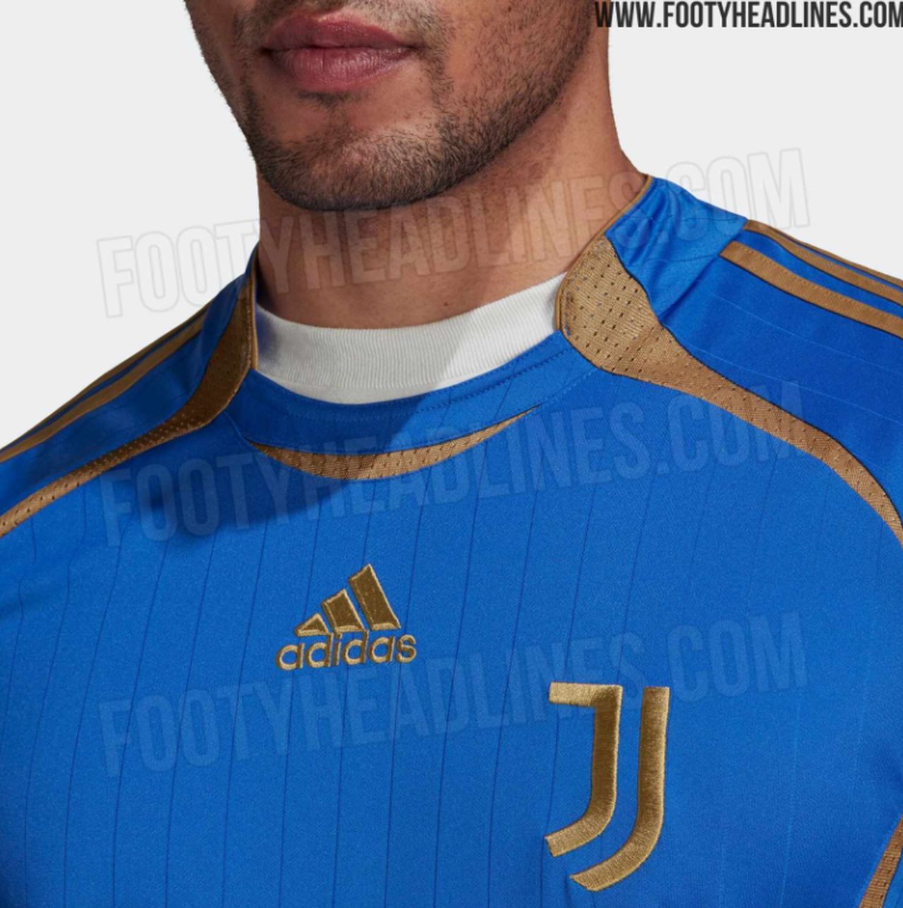Principalmente di colore blu, la maglia Teamgeist della Juventus combina questa base con dettagli dorati come il logo Adidas al centro, mentre il nuovo logo della Juventus è stato realizzato nella sua versione standard. Anche le 3 strisce sulle spalle sono dorate, così come le rifiniture sui bordi delle maniche.