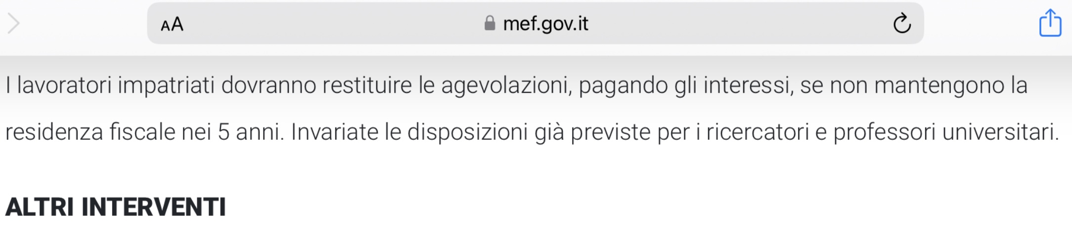 Nel pomeriggio di ieri, al termine della riunione, il MEF aveva pubblicato il comunicato stampa che presentava le novità, tra le quali appunto il tema dei impatriati. In particolare, infatti, la prima proposta di bozza di testo della Manovra che modificava radicalmente la norma (in particolare introducendo un tetto ai redditi pari a 600mila euro per poter essere sfruttata) non aveva considerato gli sportivi professionisti tra chi veniva escluso dalle novità. «Invariate le disposizioni per i ricercatori e professori universitari già previste», è il testo infatti del comunicato del MEF ancora presente online.