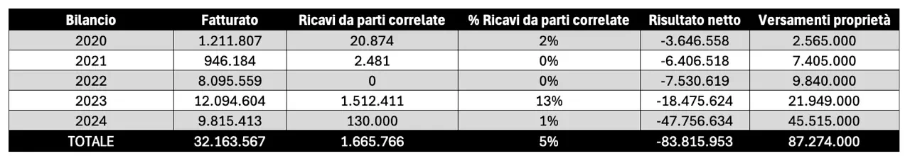 A questa cifra si sommano poi i 47,8 milioni di euro che sono stati versati tra il 23 luglio 2024 e l’8 novembre 2024, dunque nei primi mesi dell’esercizio 2024/25. La proprietà è dovuta sempre intervenire a livello patrimoniale per equilibrare la situazione: si è passati dai 2,5 milioni del 2019/20 fino ai 47,8 milioni dei primi mesi del 2024/25, per un totale di versamenti pari a 136,8 milioni di euro. In questa cifra sono compresi gli 1,6 milioni a livello di ricavi da parti correlate e i 200mila euro spesi per l’acquisto del club.