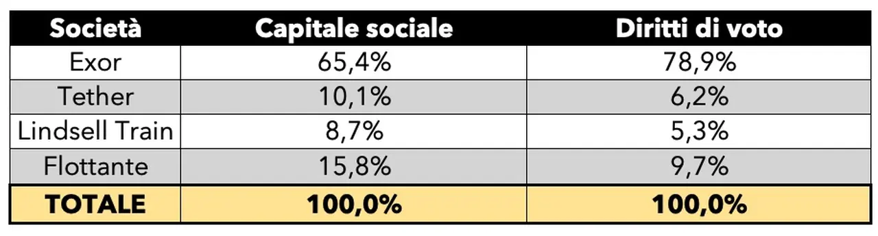 Segue Tether, con il 10,12% del capitale e il 6,18% dei diritti di voto. Al terzo posto troviamo invece Lindsell Train, scavalcato proprio da Tether, che possiede l’8,7% del capitale e il 5,3% dei diritti di voto. Lindsell Train è una società attiva nel campo dell’investimento mobiliare ed è stata fondata nel 2000 dai broker Michael Lindsell e Nick Train.
