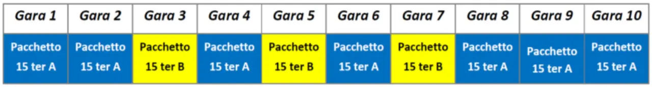 Le gare di ogni giornata attribuite ai diversi pacchetti (in particolare: 10 Gare al Pacchetto 15terA di cui 3 in co-esclusiva con il Pacchetto 15terB) vengono divise in questo modo: