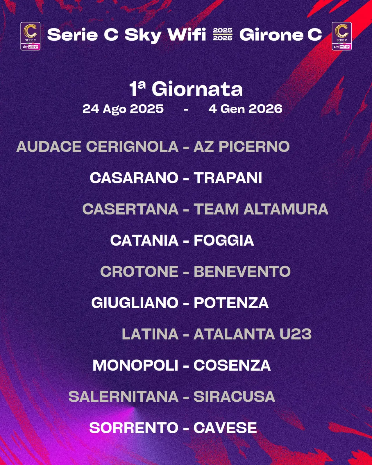 Di seguito tutte le partite valide per il campionato di Serie C 2025/26:
