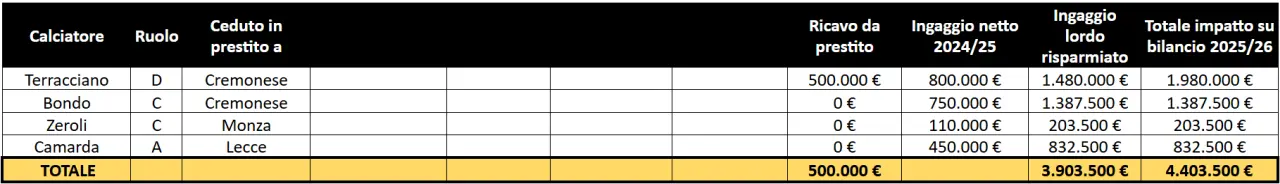 Le operazioni in uscita dovrebbero avere, secondo le stime di Calcio e Finanza, un impatto positivo per circa 135,1 milioni di euro su bilancio 2025/26.