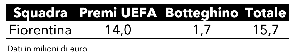E ancora meno significativi sono stati quelli garantiti dalla Conference League che nella stagione scorsa, come in quella in corso, ha visto impegnata la Fiorentina: