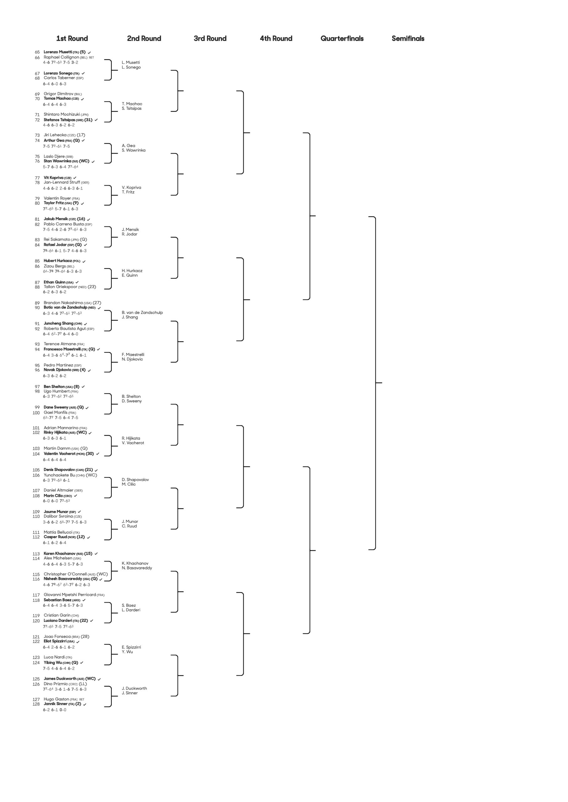 Per quanto riguarda Jannik Sinner, il numero 2 del ranking ATP sfiderà l’australiano James Duckworth.