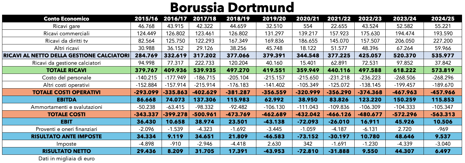 - Borussia Dortmund ha generato circa 842 milioni di euro da ricavi legati alla gestione dei calciatori.