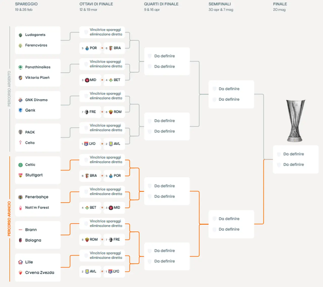 Quali sono, quindi, i criteri e i meccanismi che regolano la composizione del tabellone dell’Europa League 2025/26? Tra le protagoniste ci sono anche due italiane come Roma e Bologna, che hanno superato la fase del girone unico: i giallorossi direttamente agli ottavi grazie all’ottavo posto, i rossoblu invece passeranno dai playoff avendo chiuso decimi.